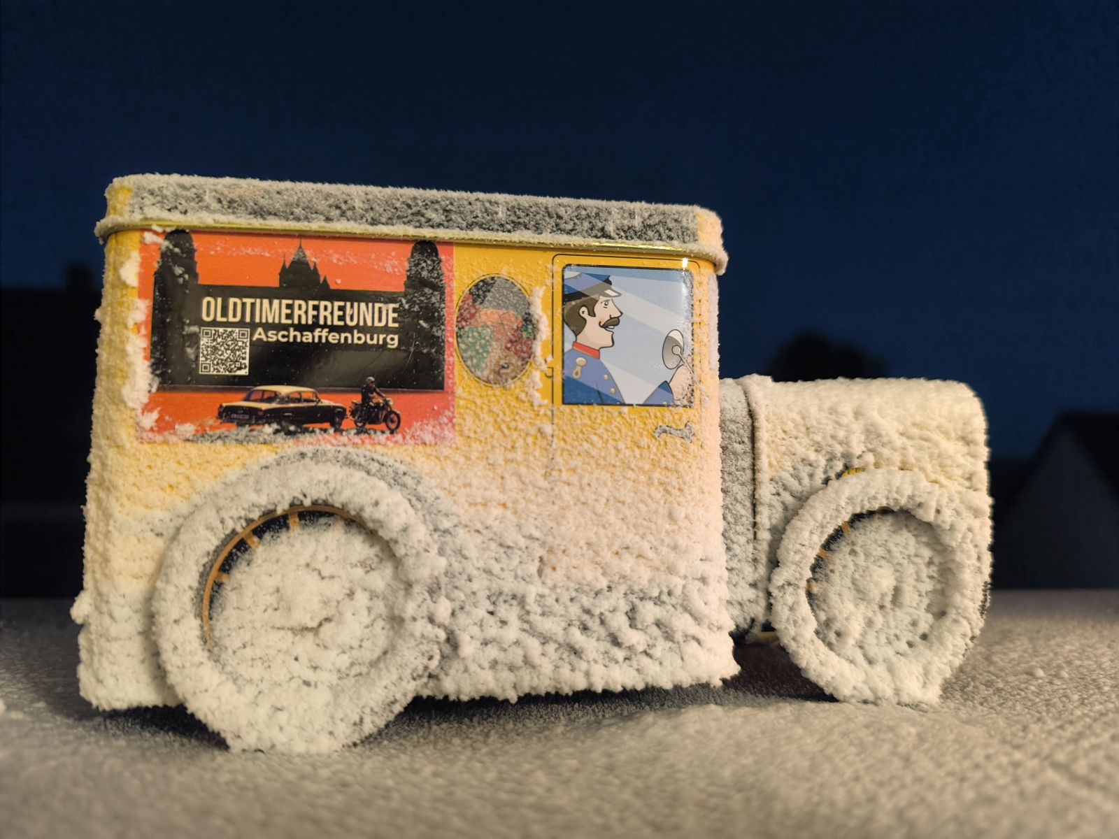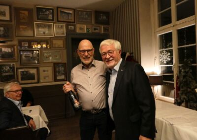 Der Jahresabschluss im Schönbusch-Café war – wie immer – ein Highlight. Ernst Richters umsichtige Organisation sorgte dafür, dass mehr als 20 Oldtimerfreunde pünktlich am Tisch saßen und sich wohlfühlten. Liebevoll verpackte Schoko-Oldtimer schmückten die Plätze und verbreiteten weihnachtliche automobile Atmosphäre.